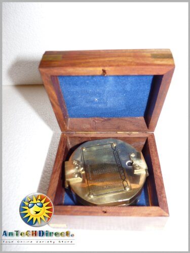 Solid Brass Brunton Pocket Style Compass W/ Wooden Box - Nautical Collection