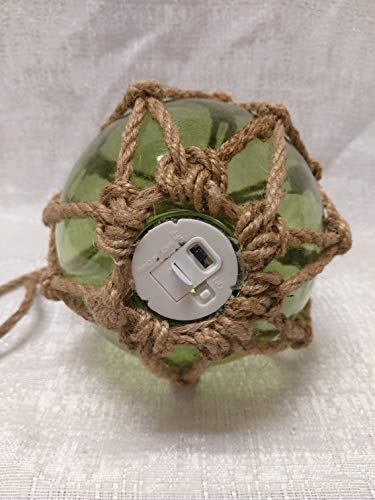 5" Green Japanese Fishing Glass Buoy with Rope Net - Float Ball with LED Light - Nautical Decor