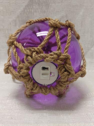 5" Violet Japanese Fishing Glass Buoy with Rope Net - Float Ball with LED Light - Nautical Decor