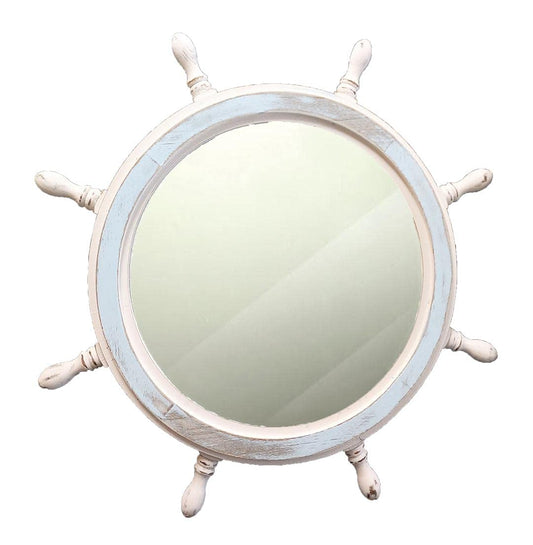 34" Wood Ship Wheel Nautical Wall Mirror - Antique Style Decorative Wall Mirror - Home Décor