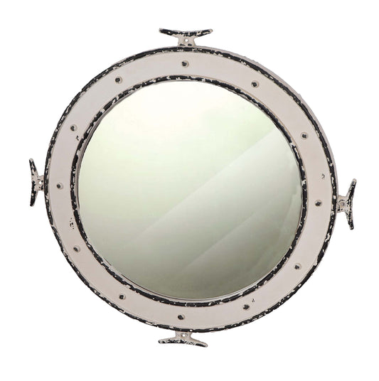 17" Wooden Porthole Mirror w/Distressed White Finish
