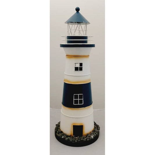 DRH - 20" Tall Distressed Tin Nautical Lighthouse with LED Lights Black Stripes - 20" x 7.5"