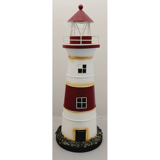 DRH - 20" Tall Distressed Tin Nautical Lighthouse with LED Lights Red Stripes - 20" x 7.5"