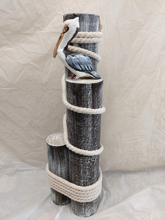 DRH Collectibles -Set of Three Wood Nautical Pilings with Pelican & Fisherman's Rope