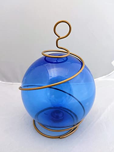Blue Japanese Fishing Glass Buoy with Metal Coil Wrap - Glass Float Ball - Bright Nautical Decor - Perfect Hanging Nautical Glass Buoy Gift for Art Lovers - 5 inches X 7.5" Height