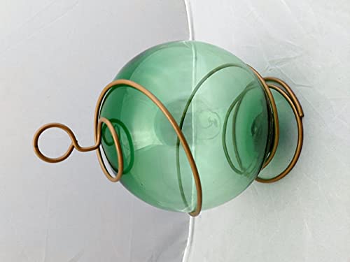Green Japanese Fishing Glass Buoy with Metal Coil Wrap - Glass Float Ball - Bright Nautical Decor - Perfect Hanging Nautical Glass Buoy Gift for Art Lovers - 5 inches X 7.5" Height