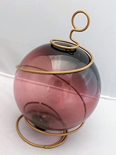 Purple Japanese Fishing Glass Buoy with Metal Coil Wrap - Glass Float Ball - Bright Nautical Decor - Perfect Hanging Nautical Glass Buoy Gift for Art Lovers - 5 inches X 7.5" Height