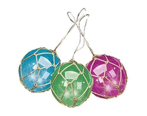 Set of Three Nautical Japanese Fishing Glass Buoy - 5" Glass hanging Float Ball with LED Light - Bright Nautical Decor Roped Net Floats