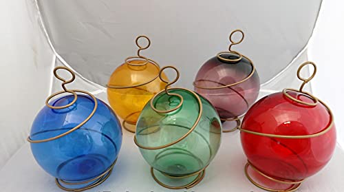 Set of Five Nautical Japanese Fishing Glass Buoy Float with Metal Coil Wrap - 5 inch each