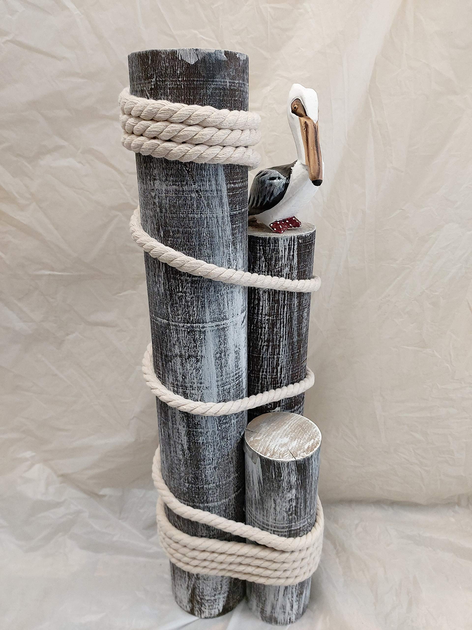 HS Set of Three Wood Pilings w/Anchor & Fisherman's Rope