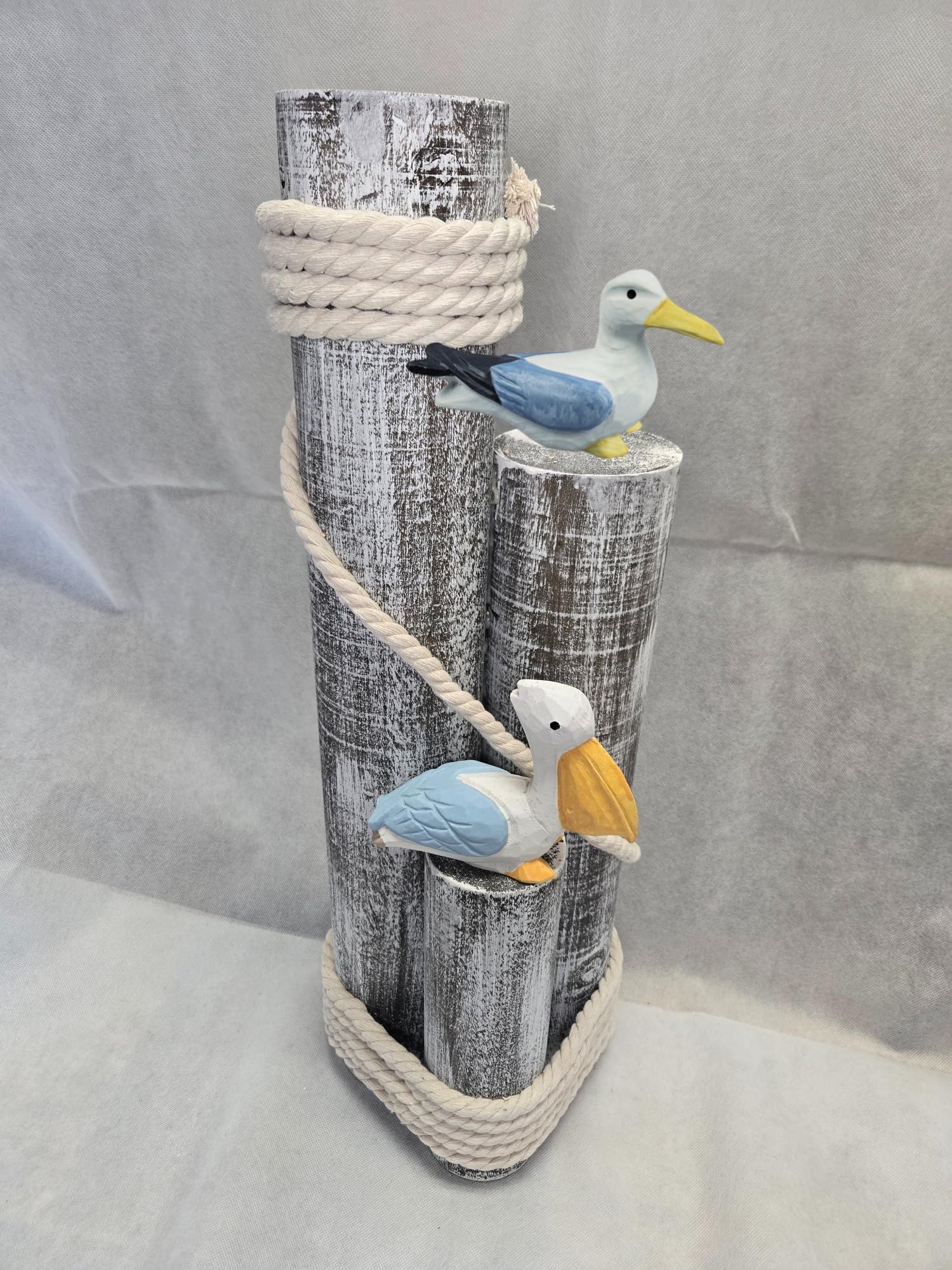 - Customizable Display Setup – None of the decorative elements (pelican, seagull) are permanently attached to the pilings. All parts ship together for customer-arranged display based on your own creative decor vision.